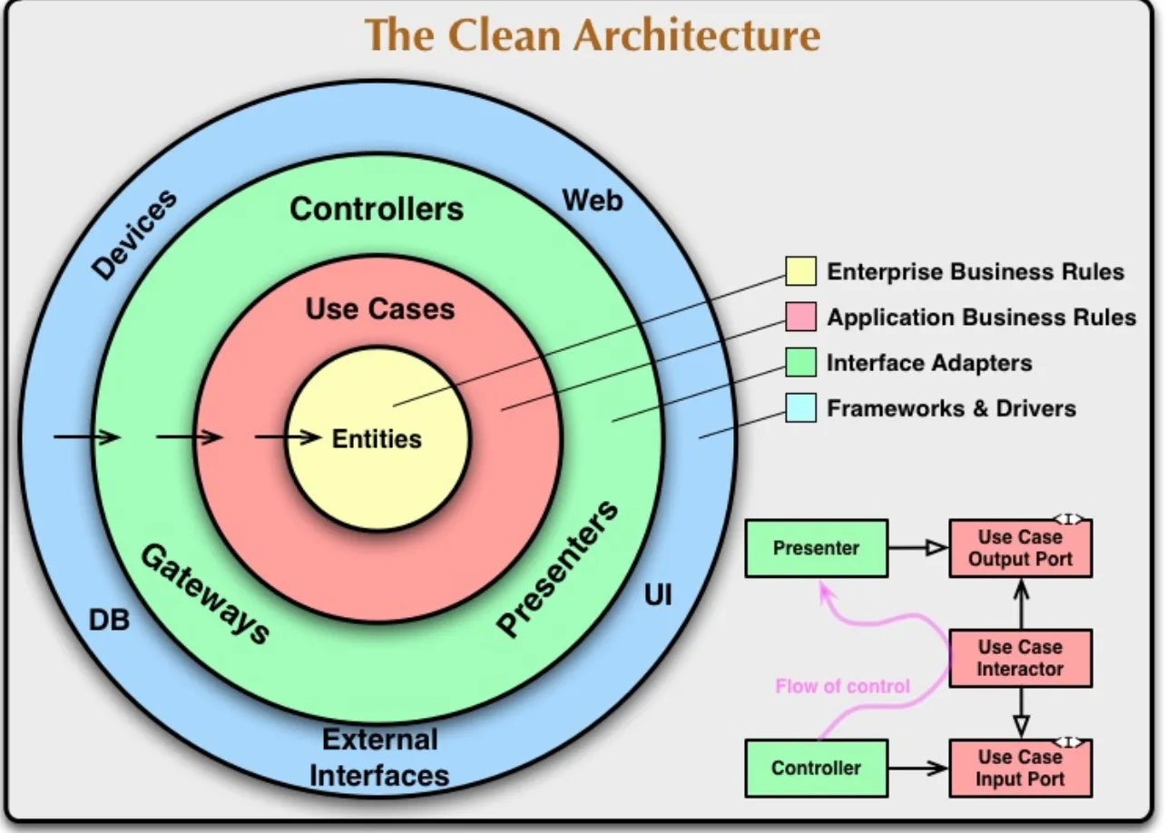 <์ด๋ฏธ์ง ์ถ์ฒ: https://blog.cleancoder.com/uncle-bob/2012/08/13/the-clean-architecture.html>